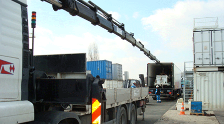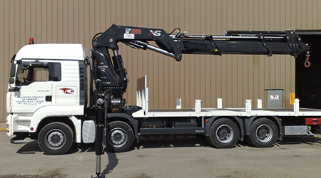 Une flotte de camions remorque équipés de grues auxiliaires allant de 17 T/m à 80 T/m et pouvant effectuer en fonction des besoins, tous types de levage et de transport (bungalows, matériel de chantier, montage de hangars, cuves, machines outils, groupes électrogènes, piste de lavage, arbres, oeuvres d'art ...)